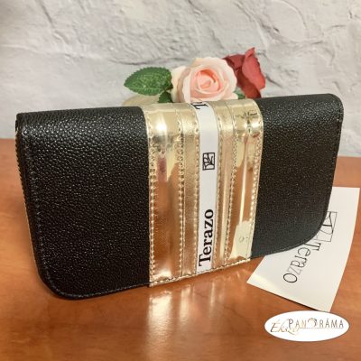 • Divatos női pénztárca, rostbőr- Terazo fekete-arany