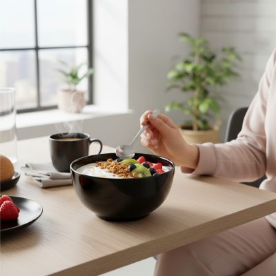 A Diwali fekete tál nemcsak praktikus, hanem esztétikus választás is – minden étkezésnél eleganciát sugároz.