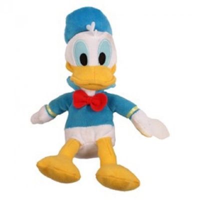 Donald a klasszikus kék sapkát, pulóvert és piros csokornyakkendőjét hordja, a plüssfigura puha töltésű. Méret: 20 cm.