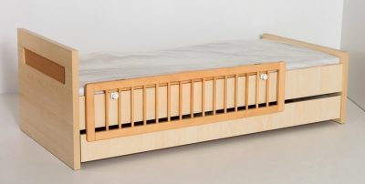 Alkalmas minden olyan ágyra, melynek kávájának vastagsága nem haladja meg a 26 mm-t. Praktikus és könnyen felszerelhető, FÚRÁS NÉLKÜL az ágy kávájára rögzíthető. A rögzítő kioldásával egy mozdulattal lehajtható.