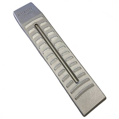 • Masszív, Edzett Alumínium: Az ék kovácsolt, edzett alumíniumból készült. Ez az anyag a faágban történő feszítéskor rendkívül ellenálló a deformációval szemben, miközben könnyebb, mint az acél ékek. Az alumínium használata kulcsfontosságú, mivel így minimalizálható a lánc sérülésének kockázata, ha a fűrész véletlenül hozzáér az ékhez.