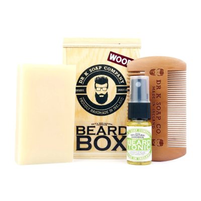 - Beard 'n Body szappanszelettel, mini szakálltonikkal és szakállápoló fésűvel, egy fa ládában a biztonság érdekében
