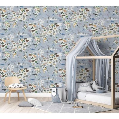 • Dream -Állatos világtérkép kék színű tapéta 13250