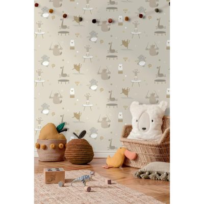 • Dream - Bézs színű gimnasztikázó állatos tapéta 13240