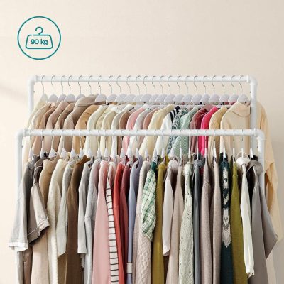 • [Rengeteg tárhely] A két 100 cm hosszú, egymástól 44 cm-re lévő függesztősín sok helyet kínál a ruhák felakasztásához, és könnyen elérhetővé teszi őket.Az oldalsó keresztlécekre táskák, sapkák, sálak és egyéb kiegészítők akaszthatók