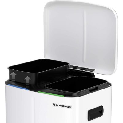 Az újrahasznosítás is egyszerű lehet: Ebben a 2 külön rekeszes pedálos szemetesben tárolhatja a szemetet, pl.: Hulladék és szerves hulladék, könnyen válogatható. Csak rá kell lépni a pedálra és a hulladékot a belső vödörbe dobni.Még csak kézzel sem kell megérinteni a kukát, ami biztosítja a higiéniát.