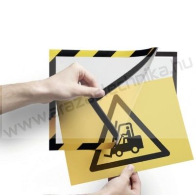 Két szín kombinációval ellátott öntapadó figyelemfelhívó keret mágneses záródással, melyben az információ könnyen és gyorsan cserélhető.