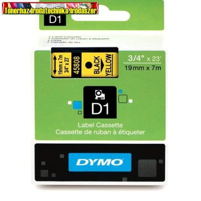 Dymo D1 kazetta (S0720880) 45808- 19mmx7m FEKETE betű/SÁRGA háttér
