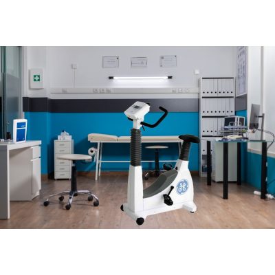 A GE Healthcare számítógép-vezérlésű eBike II Basic ülő ergométere egy percenkénti fordulatszámú, független kerékpár-ergométer 6 és 999 watt közötti terhelési tartományban. A CE-jelöléssel ellátott kerékpár-ergométer kompatibilis a MAC 2000 és a MAC 5500 készülékekkel, és kizárólag képzett személyzet általi használatra készült. Megfelel a II. védelmi osztálynak, és a sima görgőknek köszönhetően könnyen szállítható. Az ergonomikus kialakítás mindenkinek optimális teljesítményt nyújtó üléspozíciót kínál, és megkönnyíti a felszerelést/levételt. Ez különösen megkönnyíti az idősebb és a mozgásukban korlátozott betegek számára a fel- és leszállást.