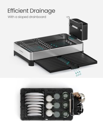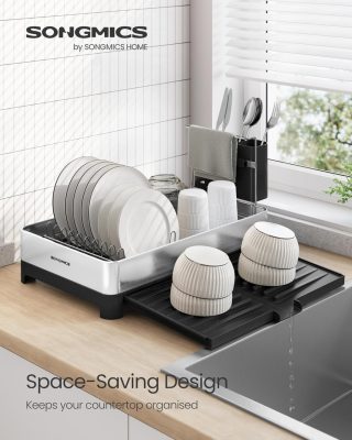 • 【PRÉMIUM ANYAG】 Masszív rozsdamentes acélból készült, ez az edényszárító korrózióálló és rozsdamentes. Erős szerkezetének akár 12 kg-ot is elbír, biztos tartást nyújtva edényeinek.