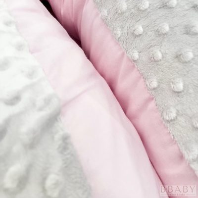 • Kétoldalas huzat: rózsaszín pamutvászon és világosszürke minky