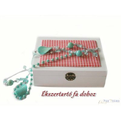 Ékszertartó fa kincsesláda - piros kockás betéttel