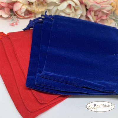 Sötétkék színű bársony tasak.