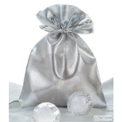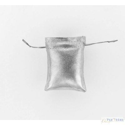 Ezüst metál színű ékszertartó tasak.
