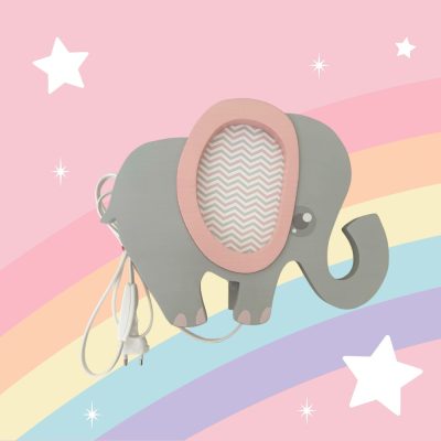 • Elefánt lámpa, szürke, rózsaszín füllel