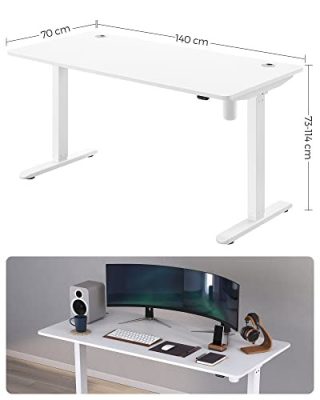 Elektromosan állítható magasságú íróasztal, 70 x 140 x (73-114) cm, motoros szerkezet, fokozatmentesen állítható, acélvázas, fehér