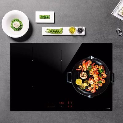 Indukciós főzőlap négy főzőzónával 80 cm-en, amelyet rendkívüli esztétikai igényesség és kivételes ergonómia jellemez. Totál fekete üveg, minimalista dizájn, csúszka vezérlés. Nagy teljesítményű főzési funkciók és csatlakoztatható kapcsolat a páraelszivóval.