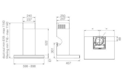 A fekete üveg előlap alumíniumkeretbe van foglalva, ami kiemeli a készülék vonalait. A páraelszívó továbbá távvezérelhető: alkalmazással vagy hangvezérléssel bluetooth kapcsolattal és az épp használatban lévő Elica főzőlapok teljesítményének megfelelően állítja be magát. Maximális sebességnél 770 m³/h kapacitással kiváló teljesítményű szívórendszerrel rendelkezik. Az érintésvezérlőt az üveg elrejti, a LED-ek alacsony energiafogyasztással világítják meg a főzőlapot.