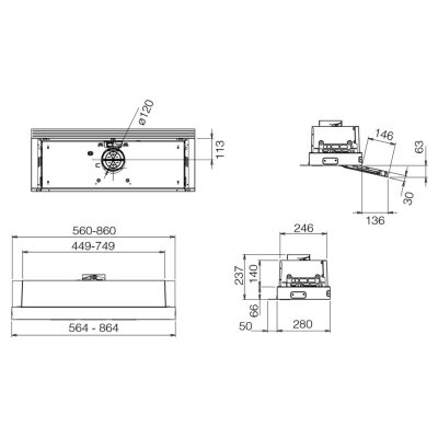 Ez egy minimalista kialakítású, beépített páraelszívó, amelyet úgy terveztek, hogy teljesen elrejthető legyen a fali szekrényben.