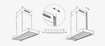 Ideális választás városi konyhákhoz. A páraelszívó mélysége állítható, így milliméterre pontosan (32-38 cm) a felső szekrényhez igazítható. A kiváló elszívóerőt minimális zajjal és figyelemre méltó energiahatékonysággal ötvözi. A karbantartás gyerekjáték, a tisztítás egyszerű és az opcionálisan rendelhető regenerálható szagszűrők akár 3 évig is használhatok.