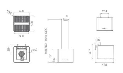 Figyelemre méltó hatású és igen eredeti sziget páraelszivó: lekerekített sarkokkal rendelkező kockaforma jellemzi, amely négyféle kivitelben kapható: fehér, fekete és beton.