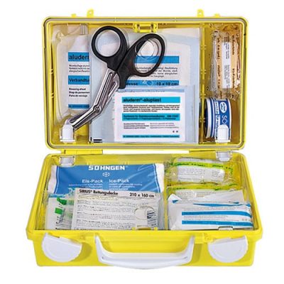 Az elsősegély-készlet dobozkészletet a DIN 13157 szerint szállítjuk. A DIN 13157 szerinti vészhelyzeti felszereléskészletet, elsősegély-készletet, tehát szabványosított tartalmat tartalmaz, és legfeljebb 10 fős kis építési területekre, vagy 20 fős gyártó- és feldolgozóüzemekre, valamint legfeljebb 50 fős kereskedelmi és adminisztrációs létesítményekbe alkalmas, a munkahelyi előírásoknak megfelelően.