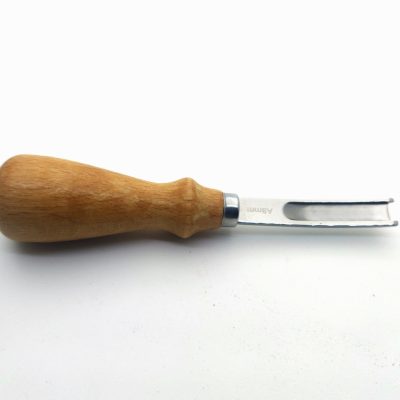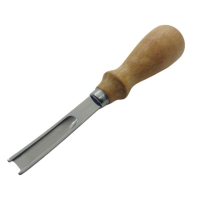 A nyél fából készült. A szerszám végén található U alakú penge hántja le a bőr élét, a nyílásszögétől függő mértékben.