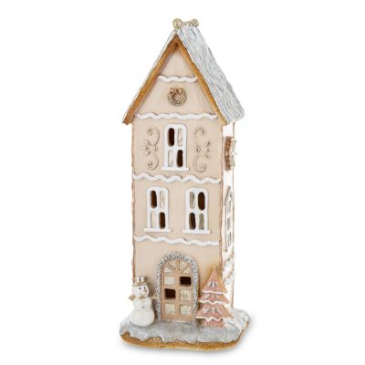 Emeletes ház poly,bézs, Led-es 32cm