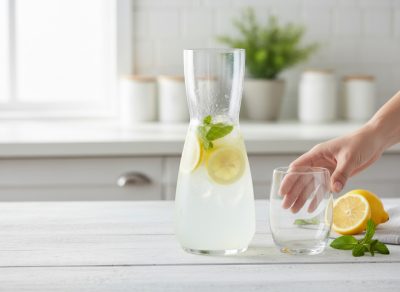 Az Onis üveg tiszta, átlátszó anyaga szépen mutatja az ital színét. Limonádé citromkarikával, mentalevéllel vagy jeges tea esetén is rendezett, esztétikus látványt ad.