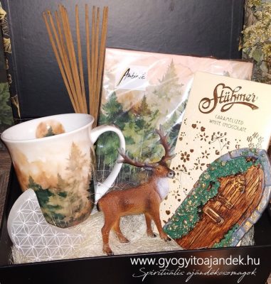 Az ajándékcsomag minden darabja az erdő békéjét hordozza – ideális ajándék természetkedvelőknek, gyerekeknek és spirituális lelkeknek, akik hisznek a láthatatlan világ varázsában, rajonganak az erdő titkaiért, a túrázásért, erdőfürdőért.