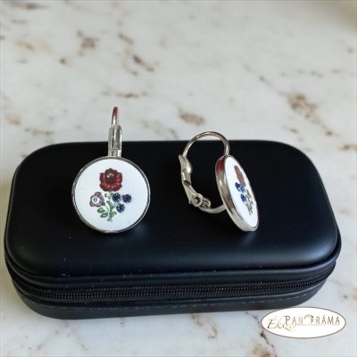 • Eredeti Swanis® kristályos, francia kapcsos fülbevaló- Kalocsai fehér kerek
