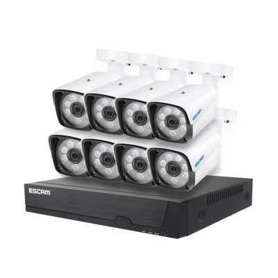 • ESCAM PVR608 - 8db aluházas, kültéri vezetékes (POE) IP kamera + központi egység (NVR): 1080P, ember érzékelés, IP66, 20m éjjellátás,