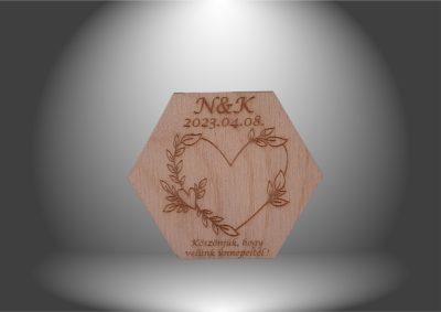 Praktikus és különleges megoldás az esküvői köszönetajándékok világában a gravírozott rombusz alakú hűtőmágnes. Egyedi, fa alapú ajándék, amelyre gravírozással kerülhet fel a pár neve, az esküvő dátuma. A rombusz forma modern és letisztult, így igazán stílusos választás bármilyen esküvőre. A vendégek számára maradandó emlék, amit a hűtőjükön elhelyezve nap mint nap viszontláthatnak. Egy gravírozott hűtőmágnes praktikus, személyes és esztétikus köszönetajándék, amely tökéletesen ötvözi a funkcionalitást és az érzelmi értéket. Egyedi kialakítása miatt minden esküvő különleges kiegészítője lehet.