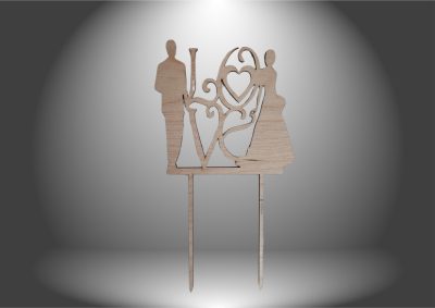 Ez az egyedi, lézervágott esküvői tortadísz tökéletes harmóniában ötvözi a romantikát és a stílust. A „LOVE” felirat díszes betűkkel jelenik meg, amelyet egy stilizált menyasszony és vőlegény sziluettje tesz teljessé. A természetes fa hatású anyag és a részletgazdag kidolgozás modern, mégis időtálló megjelenést biztosít. Ez a dekoráció kiváló választás klasszikus, vintage vagy bohém stílusú esküvőkhöz, és igazi különlegessé teszi a menyegző tortáját. A LOVE felirat és a pár együttesen a szeretet és az összetartozás szimbólumává válik a nagy napon. Egyedi tortadísz, amely örök emlékként is megállja a helyét.