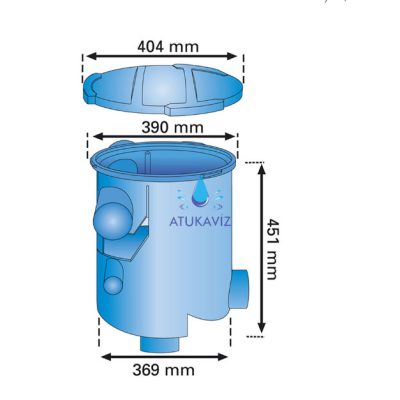 Esővízszűrő esőtároló tartályokba vagy azokra szerelhető. Ennél a változatnál a tárolóba való kivezetés lefelé megy.