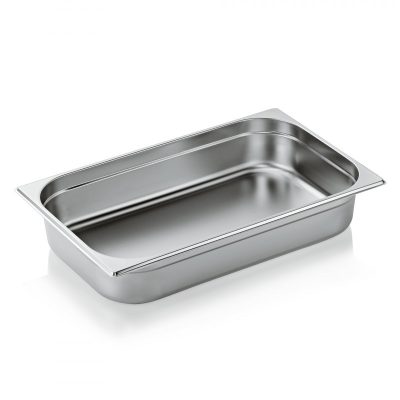 A GN 1/1 méretű edény kiváló minőségű, német rozsdamentes acélból készült, amely ellenáll a korróziónak, a napi használat során jelentkező kopásnak és hőmérsékleti változásoknak. Ez az anyag garantálja a hosszú élettartamot és a megbízhatóságot, még intenzív konyhai környezetben is.