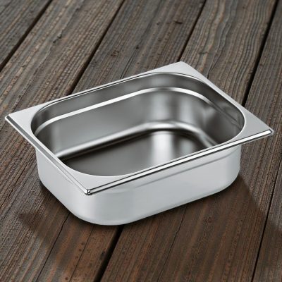 Ez a GN edény 1/2 méretű, 100 mm mély és 6 literes kapacitású edény kiváló minőségű német rozsdamentes acélból készült, amely biztosítja a hosszú élettartamot és a megbízhatóságot. Ideális választás professzionális konyhák, éttermek és catering szolgáltatások számára, ahol fontos a hatékony ételek tárolása és előkészítése. A sima felülete lehetővé teszi a könnyű tisztítást, garantálva a higiénikus használatot. Kompatibilis a GN szabványú rendszerekkel, így könnyen beilleszthető a különböző konyhai folyamatokba, elősegítve a hatékony munkavégzést. A német minőség és precizitás biztosítja, hogy ez az edény tartós és megbízható megoldás legyen a konyhájában.