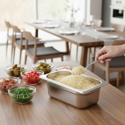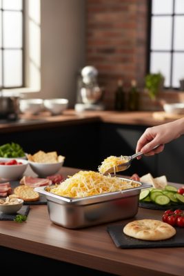 Ez a GN 1/4 méretű rozsdamentes acél edény kiváló minőségű anyagból készült, így ideális választás mind a professzionális vendéglátásban, mind az otthoni konyhában. A vastagabb kialakítás biztosítja a termék tartósságát és ellenállóképességét a mindennapi használat során. A 100 mm-es mélység és a 2,8 literes űrtartalom elegendő helyet kínál különböző ételek és alapanyagok tárolására, előkészítésére és tálalására. A rozsdamentes acél anyagnak köszönhetően az edény könnyen tisztítható és higiénikus, megfelelve a legmagasabb konyhai követelményeknek is. A GN szabványos méret (265 mm x 162 mm) garantálja a kompatibilitást a legtöbb GN kompatibilis tárolórendszerrel és berendezéssel. Legyen szó éttermekről, kávézókról, vagy akár otthoni konyhákról, ez a sokoldalú GN edény hatékony segítséget nyújt a konyhai feladatok ellátásában. A minőségi anyaghasználat hosszú élettartamot és megbízható teljesítményt biztosít.