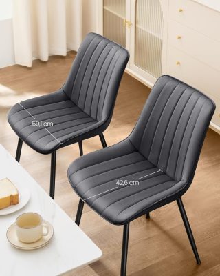 Próbáld ki a kényelmet: Ergonomikus kialakítás, 6,3 cm vastag habszivacs párnázás az ülőpárnán, és robusztus acéllábak, amelyek akár 120 kg-ot is elbírnak – ezek az elemek egy masszív és kényelmes étkezőszéket alkotnak. Még jobb: A szürke és fekete színkombinációjú konyhai szék szett elegánsan mutat és stílusos megjelenést kölcsönöz otthonának.