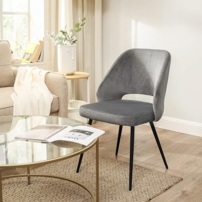• A retro stílus: Szürke bársonnyal, hátul nyílással és kifelé álló, fa megjelenésű fémlábakkal készült, ez a két étkezőszék retro stílust kölcsönöz otthonának. Bárhol és bármikor jól néznek ki