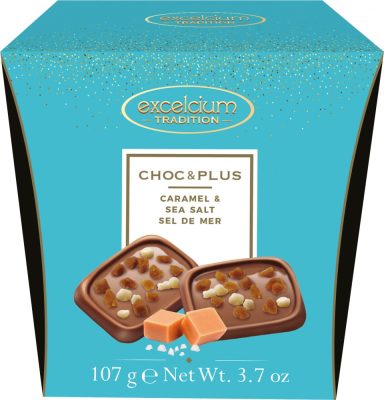 Excelcium Choc&Plus Tejcsokoládé Sós-karamell darabokkal 107g