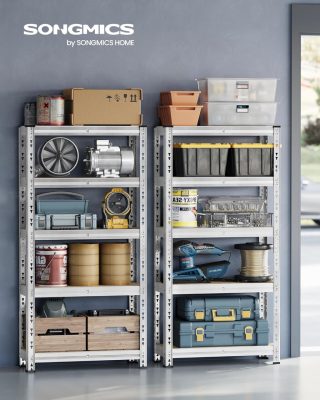 SONGMICS extra erős tárolópolcok, 2 darabos szett, garázspolc, 30 x 75 x 150 cm, akár 875 kg teherbírással, könnyű összeszerelés, rakodóállvány, állítható polcok, ezüstszínű
