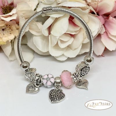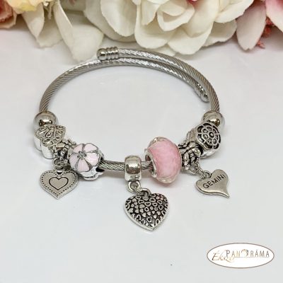 Ezüst színű divatos karkötő rugós alappal, ami lehetővé teszi hogy minden méret számára megfelelő legyen! Rendkívül jó minőségű, fiataloknak születésnap, névnap alkalmára ajándékozásra is kiváló.