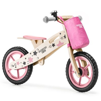 Fa futóbicikli táskával és csengővel 12" kerekekkel - rózsaszín