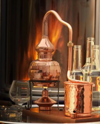 • Fa lapra szerelt 0,5 literes alembik pálinkafőző spiritusz égővel együtt