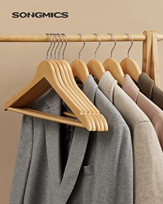 Sima felületükkel ezek a tömörfa ruhaakasztók alkalmasak kényes ruhák felakasztására. Erősek és tartósak, 5 kg-os teherbírással – ősszel és télen vastag kabátot is elbírnak. Egyszerű dizájnjuk és elegáns megjelenésük gardróbja stílusát is kiemeli, és kifinomult tárolási lehetőséget biztosít.