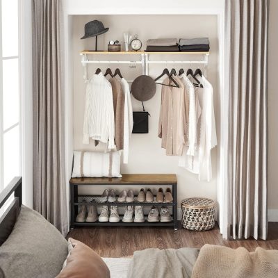 • Hosszú élettartam: A fémkeret stabil és biztos fogást, továbbfejlesztett tiplik és csavarok a nagyobb biztonság és a hosszú élettartam érdekében, a polc 15 kg-ig, minden horog 3 kg-ig, a függesztősín pedig 10 kg-ig tart. kg.