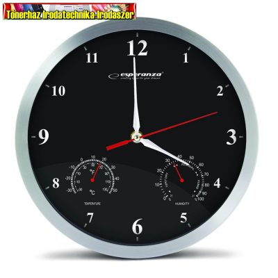Ez az óra nem csak a pontos időt mutatja, hanem a szoba hőmérsékletét és a páratartalmat is. Rendkívül elegáns és stílusos kialakításának köszönhetően kiválóan alkalmas lakások, irodák, üzletek vagy éttermek díszítésére. A nagyméretű tárcsa megkönnyíti az idősebb emberek számára az idő leolvasását a szobában, bárhol. Átmérő: 30 cm Vastagság: 4cm Anyag: Alumínium keret Óra tárcsás lemez: art papír Tápegység: 1x AA elem (nem tartozék) Csendes mozgás - zökkenőmentes működés, Rendkívül pontos mechanikus mozgás: kvarc, Beágyazott akasztó az egyszerű telepítéshez, Mérések: hőmérséklet és páratartalom Mérési hőmérsékleti tartomány: -30 ° C ~ + 50 ° C, -30 ° F ~ 110 ° F Páratartalom mérési tartomány: 0 ~ 100% 1 év garancia Gyártó: Esperanza Szélesség cm: 31,6 Hosszúság cm: 4,6 Magasság cm: 31,5