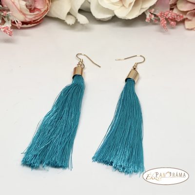 Fashion bojtos akasztós fülbevaló - arany türkiz
