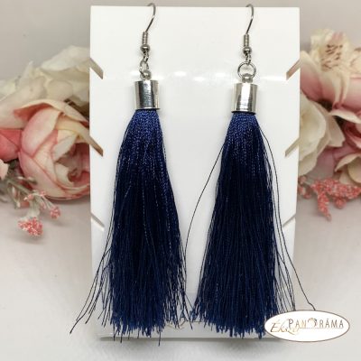 Fashion bojtos akasztós fülbevaló - ezüst sötét kék